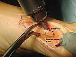 The cut then extends proximally, finishing about 5 mm from the tarsometatarsal joint and 2 to 3 mm from the proximal plantar surface of the metatarsal.
