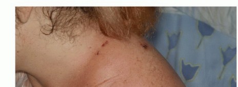 - Extensive locoregional tumor recurrence around the shoulder girdle.