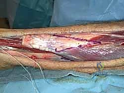 * Tendon Exposure: Expose the entire ruptured tendon, from its calcaneal insertion distally up to a level well proximal to the myotendinous junction. This allows us to fully appreciate the extent of retraction and the quality of the remaining tissue.