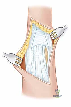* Extensor Mechanism: To gain wider exposure, the extensor tendon may be split longitudinally in the midline. Alternatively, and often preferably, incisions can be made on its borders, allowing mobilization of the entire extensor mechanism as a flap.
