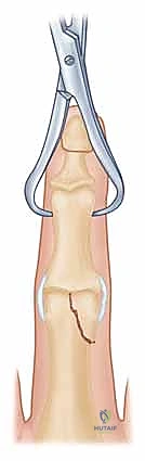 - Traction (Optional): If an assistant is unavailable, or for particularly difficult reductions, finger-trap traction can be applied to the affected digit to help with ligamentotaxis. This is achieved by suspending the hand from an IV pole with finger traps on the affected and adjacent digits, providing gentle, sustained traction.