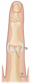 * Temporary K-wire: A small 0.028-inch or 0.035-inch K-wire can be drilled across the fracture line to temporarily stabilize the reduction. This temporary K-wire can later be removed, and its hole can sometimes be utilized for a definitive screw.