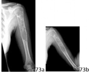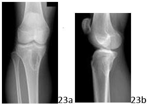 DISCUSSION: The radiographs reveal a nonaggressive-appearing lytic lesion of the tibial cortex that lacks the usual reactive sclerosis (cortical and periosteal reaction) that is often seen