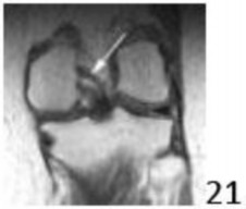 21. # A 34-year-old woman reports pain, swelling, and loss of knee motion that has been present for more than 3 years. Examination reveals fullness around the knee, a joint effusion, limited knee flexion, and tenderness to deep posterior palpation. Figure 100 shows a lateral radiograph of the knee. What is the most likely diagnosis?