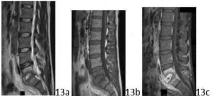 8. # The finding at L3 in the sagittal CT scan shown in Figure 10 is characteristic of which of the following conditions?