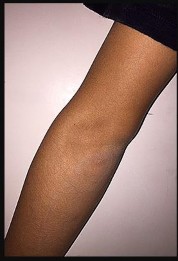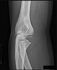 An 18-year-old woman was skateboarding when she fell and sustained the injury seen in Figures 4a through 4c.
