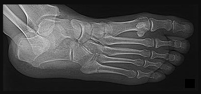 The patient in Figure 96 has medial pain at the first metatarsophalangeal (MTP) joint and no other pain.