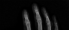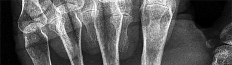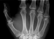 The radiographs shown in Figures 1 and 2 reveal squamous cell carcinoma of the thumb involving the