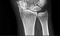 Lunate or perilunate dislocations are usually treated with open reduction and internal fixation through a dorsal or combined dorsal and volar approach. A high index of suspicion is necessary when treating patients who sustain multiple trauma because as many as 25% of lunate or perilunate dislocations are missed initially. The radio dense appearance of the lunate seen in Figure 1 is an example of transient ischemia of the lunate that can occur following treatment of lunate and perilunate dislocations. It has been reported in up to 12.5% of cases. This usually is seen between 1 and 4 months post injury with a relative radio density of the lunate. This appearance of the lunate should not be over treated and usually is a benign self-limiting event. Surgery is not indicated at this time; the incorrect responses are treatment options for Kienbock disease. Treatment of the lunate or perilunate dislocation involves initial gentle closed reduction followed by open reduction, ligamentous and bone repair, and internal fixation. Median nerve dysfunction is common, and a simultaneous carpal tunnel release is often performed. Early treatment seems to produce better results, but good results have been reported when treatment is delayed for up to 6 months. The many questions regarding treatment of this problem involve the use of capsulodesis to supplement intercarpal ligament repair, repair/stabilization of the lunotriquetral interval vs no treatment of that articulation, and intercarpal fixation techniques. In delayed cases, proximal row carpectomy when the head of the capitate is intact and total wrist fusion if there are degenerative changes have been used. Chondral injuries are common, may not be recognized on radiographs, and may negatively affect longterm outcomes. Even when treatment is optimal, this injury is associated with a guarded prognosis and possible permanent partial loss of wrist motion and grip strength. At 10-year follow-up, radiographs will often demonstrate degenerative changes, but these changes do not always substantially negatively affect _hand function._