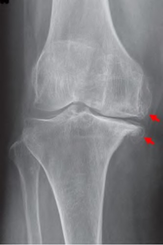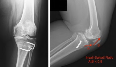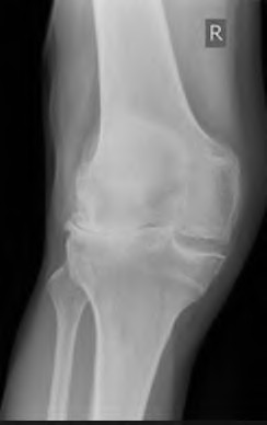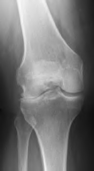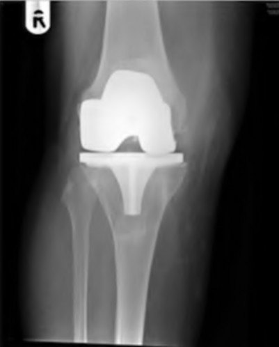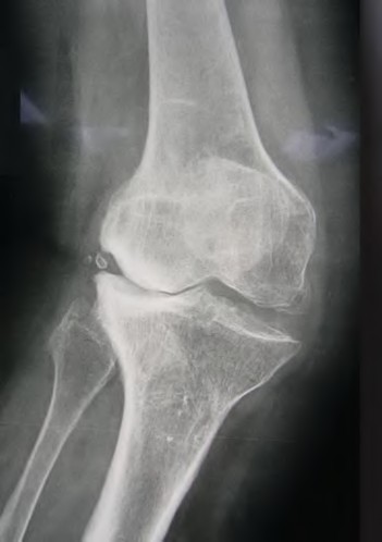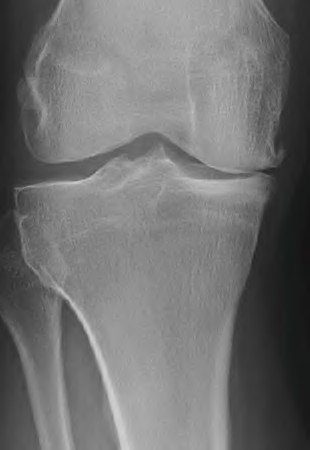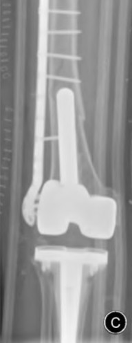 Figure A demonstrates and AP radiograph of the knee showing end-stage arthritis with severe lateral compartment narrowing.