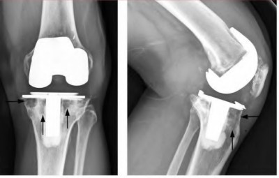 This pattern of osteolysis can be explained with the concept of effective joint space. This concept states that joint fluid and wear particles will flow according to pressure gradients and follow the path of least resistance.