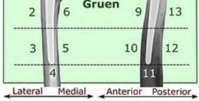 The treatment is cable plating or allograft struts or a combination of the two. Type B2 is a fracture with a loose stem with good bone stock. The treatment is a cementless porous coated long stem atleast two diameter length past the