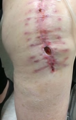 1) Prosthesis reimplantation with need for multiple surgical debridements at 2-year follow-up