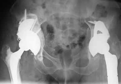 Osteolysis of the pelvis is a common complication associated with total hip arthroplasty. Osteolysis affects sockets with and without cement, and has been attributed to the biologic reaction to wear debris. With well-fixed cementless sockets, an expansile pattern of osteolysis is usually seen.