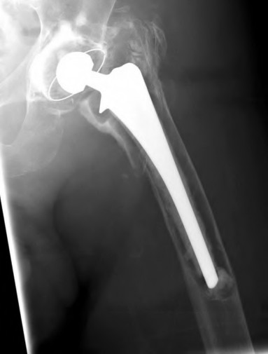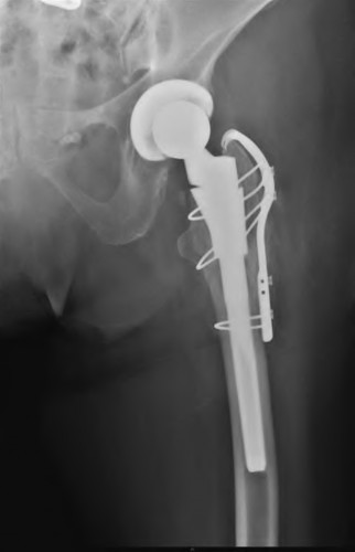Appropriate care of an intraoperative fracture during total hip arthroplasty requires removal of the stem to adequately evaluate the fracture. The fracture should then be stabilized with cerclage wiring, and a long stem should be inserted to ensure stability of the stem in the postoperative period.
