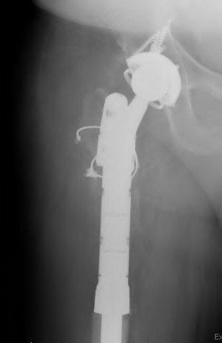 The most common complication was deep prosthetic infection, which occurred in nearly 10% of the patients studied. All infections occured in patients whom had previously received radiation. The mean Harris Hip score improved from 42 to 83 points post-operatively, and 41 of the 42 patients were ambulatory at follow-up. Implant survivorship free of revision for any reason at 5 years was 90%, and free of revision for aseptic failure or radiographic failure was 97%.