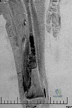 And here, a sagittal MRI scan, critically showing the precise length of tumor to be resected. This measurement is key for our osteotomy planning.
