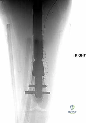 Late fracture of massive allografts can lead to chronic pain and loss of function. Use of intramedullary fixation and avoiding screws in the allograft may help to minimize this complication.