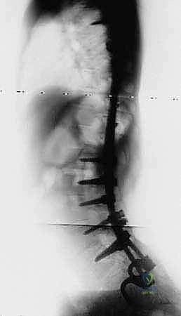 FIG 4 • Neuromuscular spinal deformity: spastic lordoscoliosis with S-hooks. These images demonstrate the long-term stability and correction achieved with S-rod fixation.
