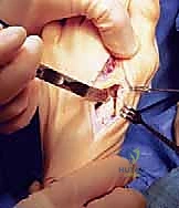 - Medial Capsulotomy: "Using a #15 blade, incise the medial capsule sharply in a longitudinal direction. This provides direct access to the medial eminence."