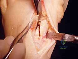 - Medial capsulotomy.