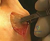 - I'll make an incision through the joint capsule on the dorsal aspect of the medial eminence.