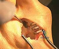TECH FIG 12 • The medial eminence has been completely exposed. The sagittal sulcus is demonstrated by the Freer elevator.