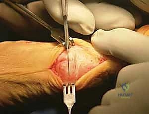 - Dorsal Flap Elevation & Nerve Protection: Dissecting dorsally first, I'll gently pull the skin flap away from the capsule. This exposes the dorsal medial cutaneous nerve, which we will carefully identify and retract to prevent injury.