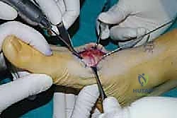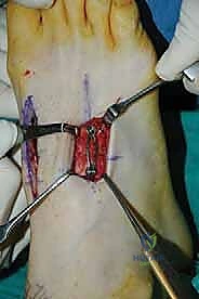 * Pearl: Meticulous identification and protection of all dorsal cutaneous nerves, the deep peroneal nerve, and the dorsalis pedis artery. Blunt dissection is key. Avoid electrocautery directly on or near nerves.