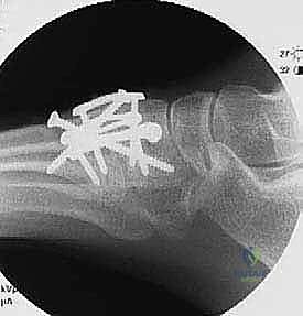 * Pearl: This is why temporary K-wire fixation is so critical. Take your time. Release tension, manipulate the foot, palpate, and use fluoroscopy until you are absolutely certain of the plantigrade position. Don't rush this step.Nonunion: