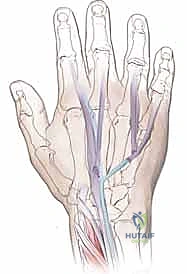 * Incision 1 (Index MP Joint): Make a 1-cm longitudinal incision over the index finger MP joint, slightly ulnar to the midline.