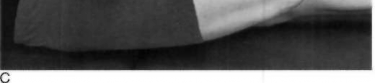 Figure 9-4. Lateral aspect of the lumbar spine. A, Normal alignment B, Hyperlordosis. C, Flat back deformity. (G From Rothman RH, Simeone FA. The Spine, 3rd ed. Philadelphia, WB Saunders, 1992, p 905.)
