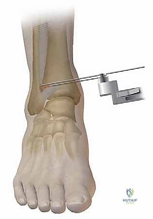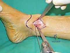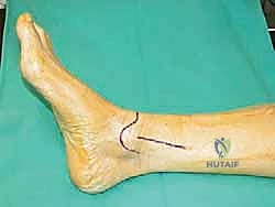 * Incision: An anterior incision is made over the distal tibia and ankle, immediately lateral to the tibial crest. This incision is typically longitudinal.
