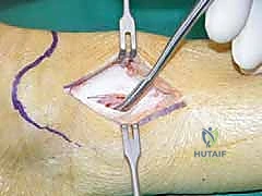 * Tibial Exposure: With all soft tissues and neurovascular structures meticulously protected, the anterior surface of the tibia can then be exposed. The osteotomy would then be carried out as described previously, ensuring minimal periosteal stripping.