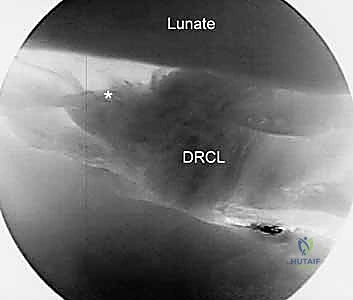 - "As you tighten the knot, observe arthroscopically from the VR portal. You should see the torn DRCL being pulled up against the dorsal capsule, effectively preventing it from impinging into the joint and reapproximating the torn edges. This dorsal traction provided by the encircling suture is vital for stability."
