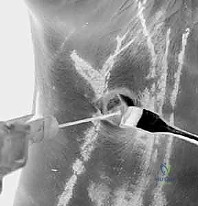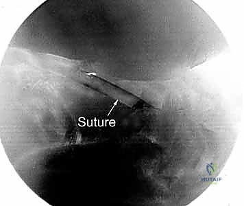- "Now, carefully withdraw the spinal needle, bringing the suture limb out through the skin incision of the 4-5 portal."