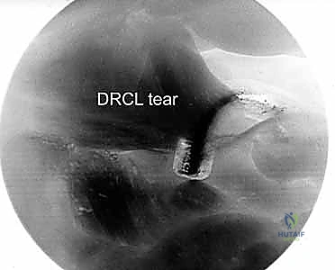 Figure 1B: Arthroscopic view from the VR portal showing a clear DRCL tear ().*