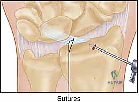 - "Back off the wrist traction slightly. This reduces tension on the ligament and allows for easier approximation and knot tying."