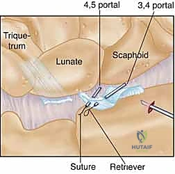 - "Once the sutures are safely retracted beneath the extensor tendons, tie a secure knot. I prefer a surgeon's knot followed by several square knots to ensure it holds. Tie the knot either at the 3-4 portal skin incision or the 4-5 portal skin incision, depending on where your suture ends are externalized."