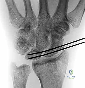 - A second K-wire will pass from the lunate into the triquetrum, or from the scaphoid into the capitate, to further stabilize the carpus and maintain the reduction.