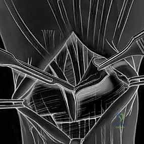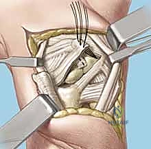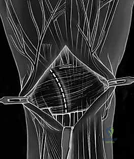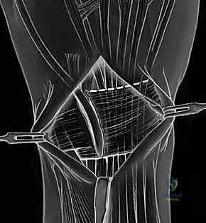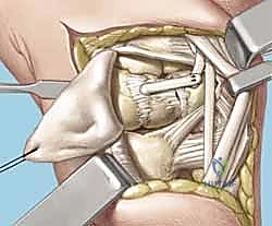 - Incision: The capsulotomy incision is made between these two ligaments, splitting the capsule longitudinally.