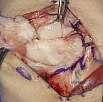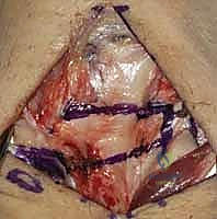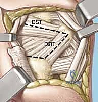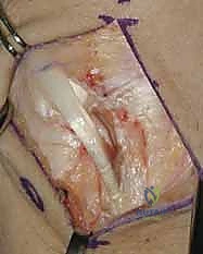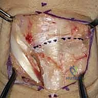 TECH FIG 3 • A. Dissection of septa to create ulnar-based flap of extensor retinaculum.