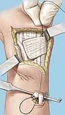 TECH FIG 3 • B. Preparing to reflect extensor retinaculum.