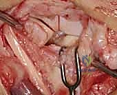 TECH FIG 5 • E. Midcarpal and radiocarpal joint surfaces exposed and examined for arthritic changes.