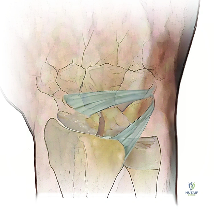 However, if the scapholunate ligaments are completely torn, the scaphoid loses its constraint and collapses into an abnormally flexed and pronated posture – what we call "rotatory subluxation of the scaphoid." Concurrently, the lunate and triquetrum translate ulnarly and rotate abnormally into extension, leading to a dorsal intercalated segment instability (DISI) pattern.