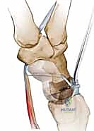 * Use a K-wire to guide the drill, ensuring careful placement to avoid damaging the articular cartilage or neurovascular structures.