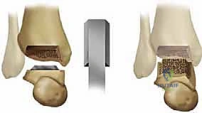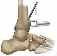 - Superior Talar Dome Preparation: The superior surface of the talar dome is then prepared using the talar cutting guide as a reference, ensuring a flat, parallel cut.