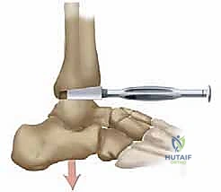 - Lateral Incision and Joint Exposure: Through a separate 2.5-cm lateral incision made directly over the sinus tarsi, we expose the subtalar joint.