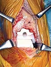 TECH FIG 3 • Osteotomy of tibial anchor region. A. The tibial peg cutting guide.