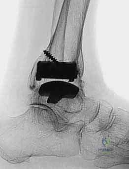 - Screw Fixation: Through the primary anterior incision, positioned anterior to the newly implanted talar component, a standard AO cancellous screw is placed from the talar neck, across the subtalar joint, and into the calcaneus. This provides stable compression for fusion.